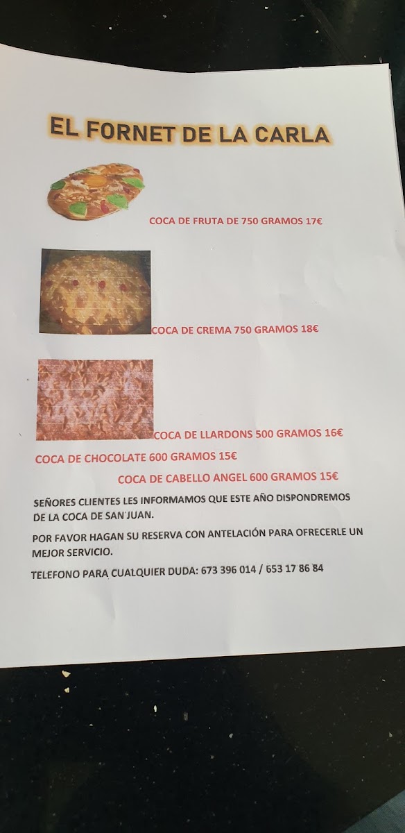 El Fornet De La Carla Menu